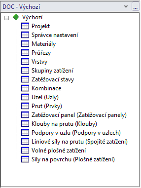 Proto je nutno dodržet pořadí: „Projekt“, „Nastavení“, „Knihovny“, „Skupiny“, „Konstrukce“, „Zatížení“ a pak teprve můžete přidat další potřebné položky.
