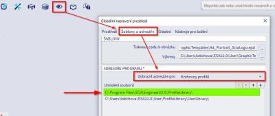 - Změňte adresář v programu SCIA Engineer (Hlavního menu → Pohled → Globální nastavení prostředí → záložka Šablony a adresáře → zobrazit adresáře pro "Knihovny profilů").