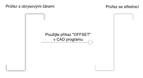 Při importu tenkostěnného průřezu je velice důležité pracovat se střednicí průřezu. Doporučujeme vytvořit tuto střednici v DXF / DWG souboru před vlastním importem průřezu do SCIA Engineer. Toho může být snadno dosaženo použitím příkazu "Odsazení" v CAD programu.