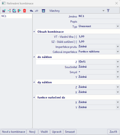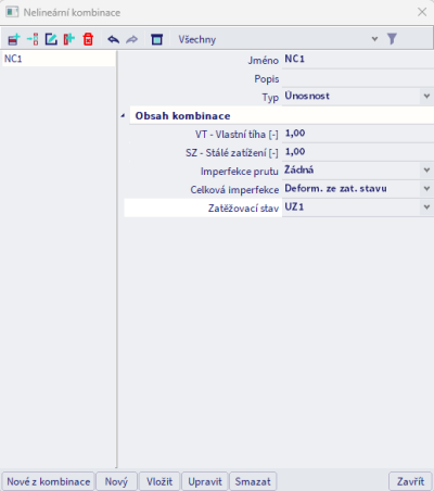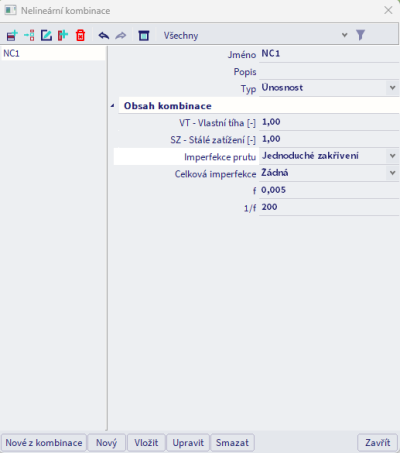 Ano. Namísto odkazu na data o vzpěru umožňuje SCIA Engineer definovat lokální imperfekce přímo pomocí vlastností nelineární kombinace. Pamatujte však, že zadaná křivost bude pak aplikována na všechny dílce v konstrukci.