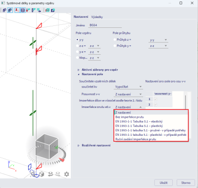 - Vlastní stabilitní tvar jako imperfekce: můžete zvolit stabilitní kombinaci a jeden z jejích vlastních tvarů a ten aplikovat jako imperfekci konstrukce.