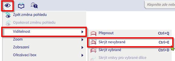 Vyberou se všechny prvky s tímto parametrem. Viditelnost můžete změnit tak, aby byly viditelné pouze tyto vybrané prvky: