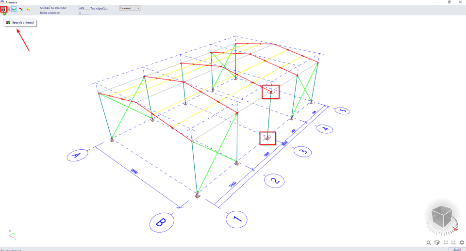 Chcete-li spustit animaci, klikněte na tlačítko "Spustit animaci" v levém horním rohu.