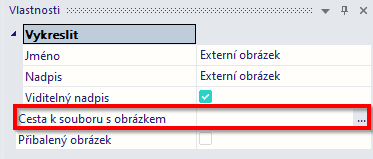 Poslední možností je vložit externí obrázek, který je uložen ve vašem počítači. Jednoduše přidáte položku Externí obrázek z kapitoly Externí položky a ve vlastnostech nastavíte správnou cestu k obrázku: