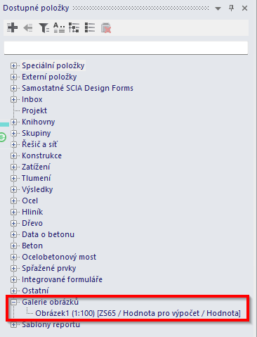 Upravený obrázek lze poté vložit do Engineering reportu tak, že přejdete do Galerie obrázků v dostupných položkách: