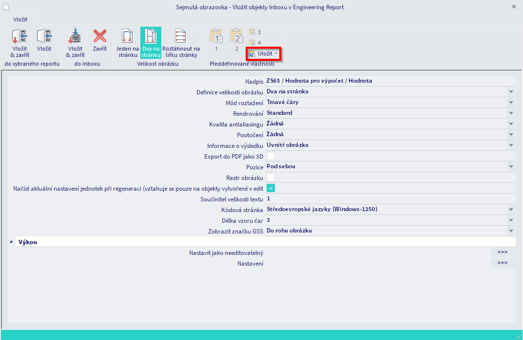 Tato možnost je stejná, jako odeslání živého obrázku do Engineering reportu, ale pomocí této možnosti můžete také nastavit určité měřítko, které se použije pro živý obrázek: