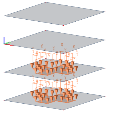 Předpokládejme, že čtyři desky jsou umístěny přímo nad sebou a volné plošné zatížení je zadáno přesně v rovině 3. desky.