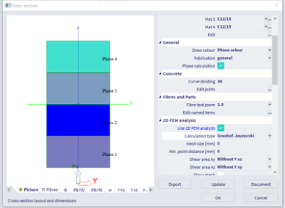 Since civil structures are frequently designed and constructed with miscellaneous materials (e.g. steel, prefab and in-situ cast concrete), the static system of the structure changes during its erection. This module enables you to calculate structures that consist of 1D and 2D elements in different phases. The stress history is calculated by taking into account added or removed supports, members, hinges, load cases, changing cross section properties etc.