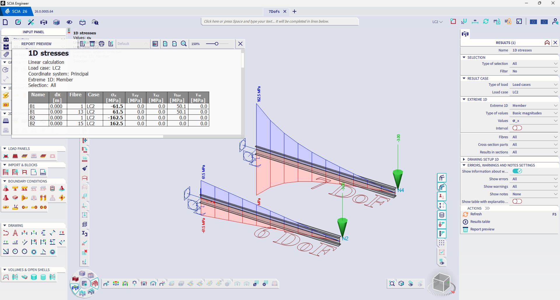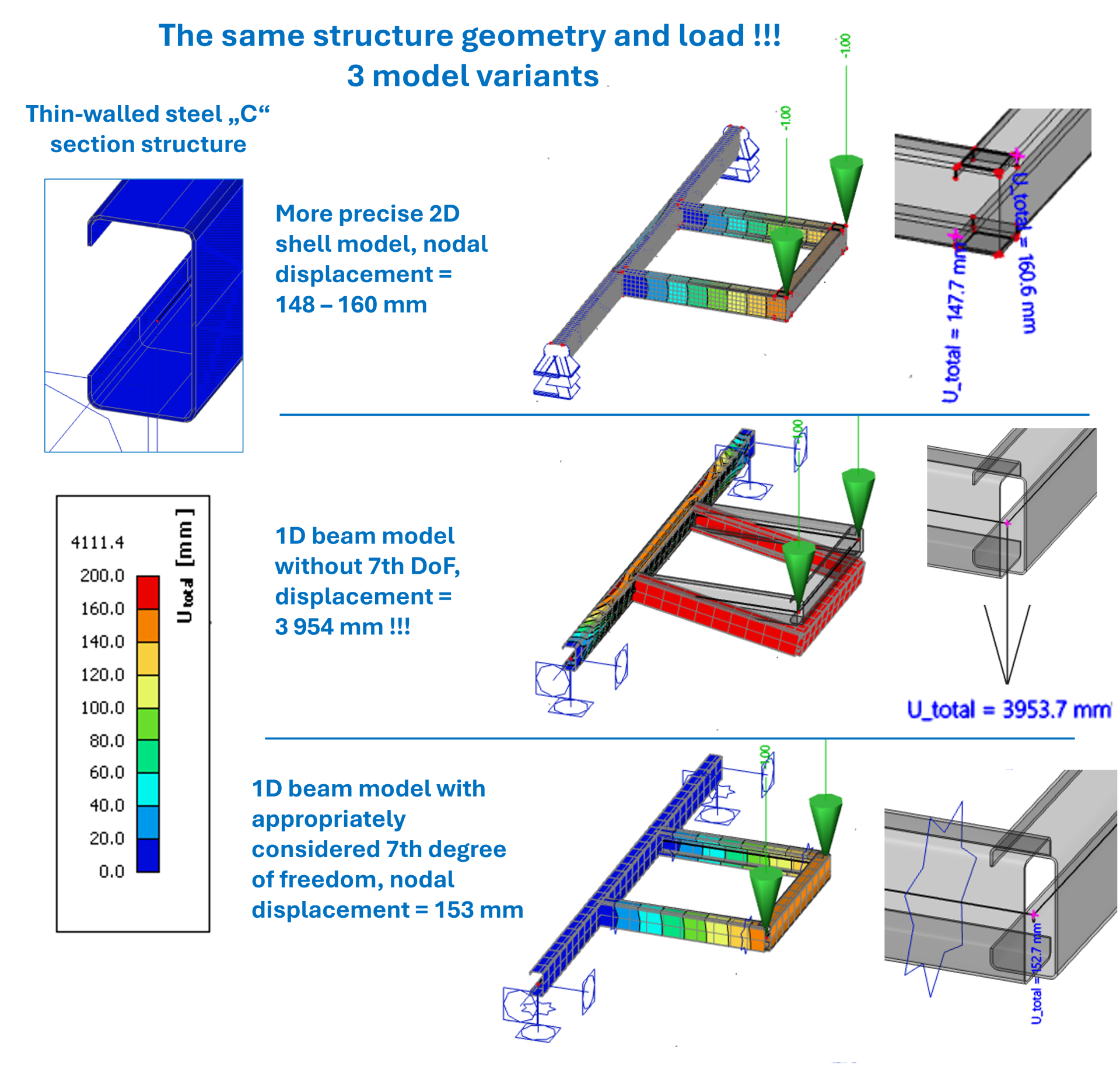 This feature introduces a new type of finite beam element that can account for an additional degree of freedom (warping). It allows for accurate modelling of slender or thin-walled beams, open-section beams, and structures subjected to significant torsion or complex loading. This approach is important especially for bridges, steel girders, or structures with non-standard cross-sections, where warping and distortional effects play a significant role in the structural response.