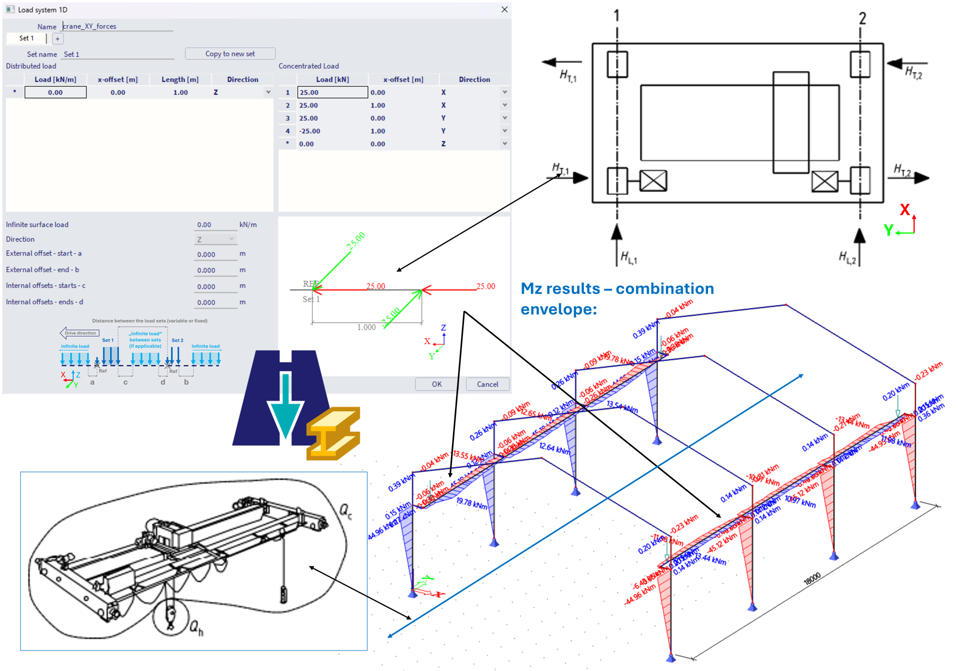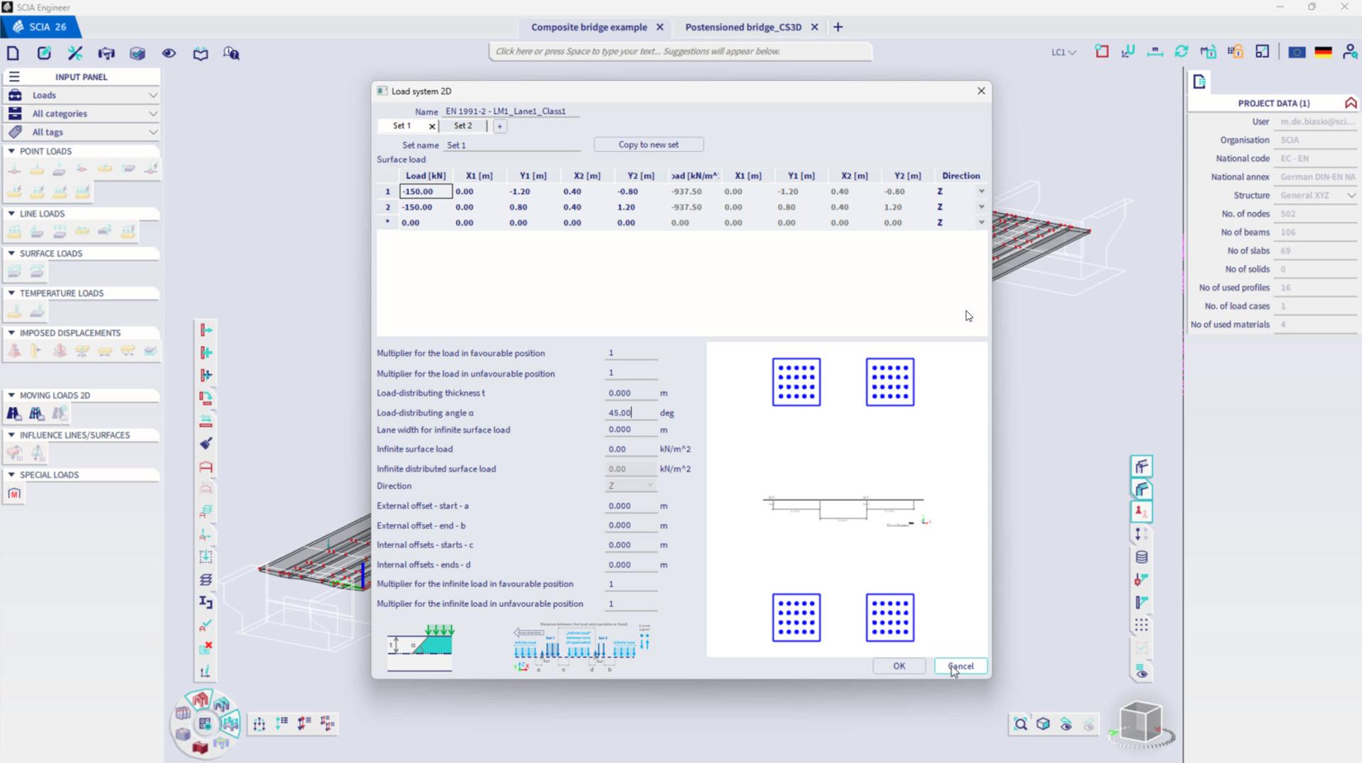 Leveraging the theory of influence lines and surfaces, this feature allows the engineer to quickly and automatically identify the worst-case position(s) of the load system before running the calculation. Therefore, the engineer can limit the analysis and postprocessing tasks to a limited number of worst-case scenarios, thus avoiding computing and post-processing negligible and non-critical load situations.