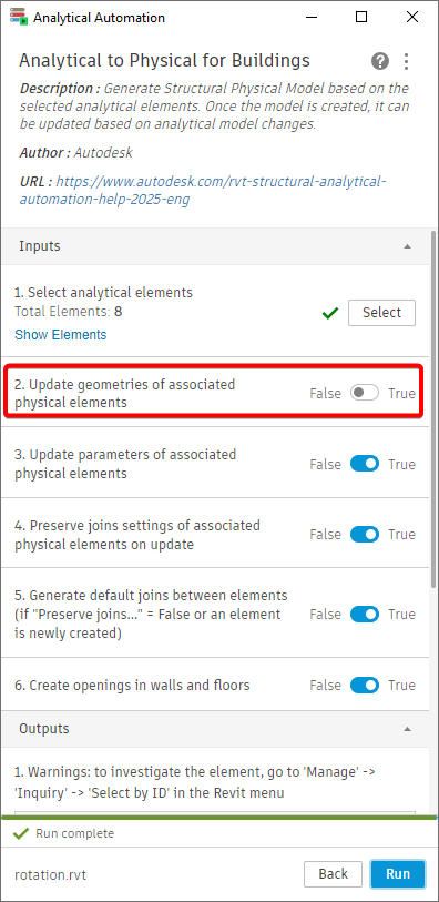 - Run the automation, the rotation of the structural element will be modified accordingly.
