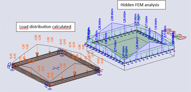 When you use a load panel with the Load transfer method “Accurate (FEM), following analysis is performed (see also our helppage FEM method):