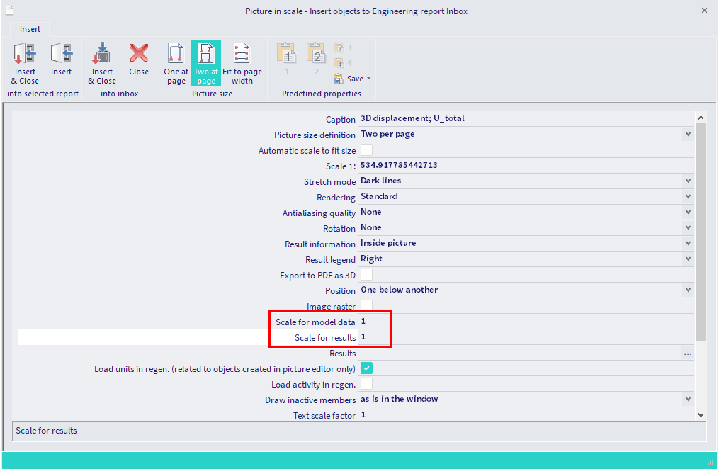In SCIA Engineer 19.1 you can adjust the scale within the properties of the picture in the Engineering Report. You can find this property under ‘Scale for model data’ and it can be set either when the picture is being inserted into the report or any time later. When adding the picture, by default, the current scale from the modelling environment is taken. However, this can be simply adapted if required.