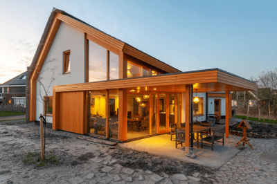 De Zonnegroet in Zeewolde is a warm passive house made of lime hemp in a dynamic design language and finished with high-quality ecological and bio-based building materials.