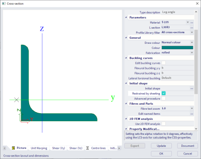 Pour toutes les sections avec une forme initiale, à la fois l’acier et l’aluminium, qui sont asymétriques (ou en d’autres termes, où l’axe principal et local ne sont pas alignés), une nouvelle option est disponible : « Tenu par la tôle profilée ».
