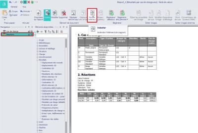 - Utilisez le bouton indenter pour que le tableau des réactions devienne un sous-chaptire du tableau des cas de charges