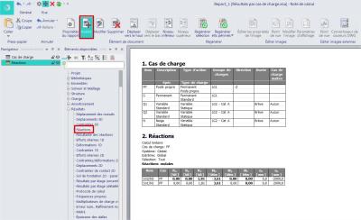 Vous pouvez créer une vue d'ensemble des résultats (réactions, efforts internes...) pour chaque cas de charge ou combinaison sans avoir à créer tous les tableaux manuellement. Vous utiliserez donc la fonctionnalité du chapitre dans la note de calcul