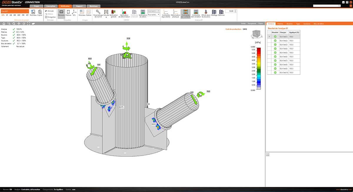 Dans cette région particulière, l'importance des effets sismiques ne peut pas être sous-estimée. C'est pourquoi le logiciel IDEA STATICA STEEL a été utilisé ici. Certains assemblages ont été optimisés sous ce logiciel, notamment les pieds de poteaux tubulaires.