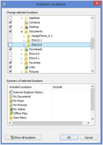V záujme urýchlenia procesu vyhľadávania používa systém Windows na rýchle vyhľadávanie väčšiny bežných súborov v počítači index, pričom zaznamenáva informácie o súboroch do indexu súborov. Súčasne ale spotrebováva niektoré zdroje systému, takže je výhodné vylúčiť v Možnostiach indexovania indexovanie SCIA Engineer.